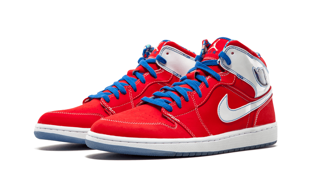 Sport red and royal blue bring a different feel to the traditional Air Jordan 1 Retro. A muted deep red leather is the base for white and royal blue details on the rest of the shoe. Contrast stitching can be found all over, to complement the bold color scheme.
